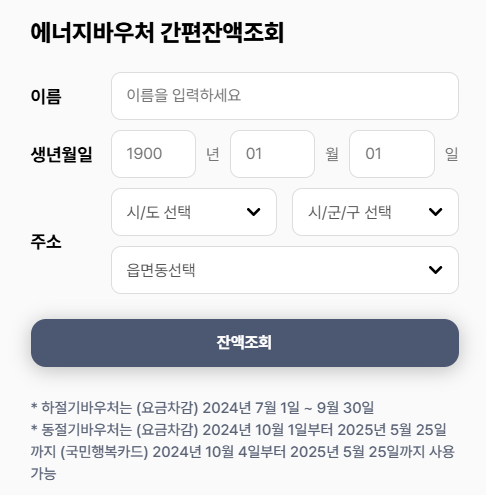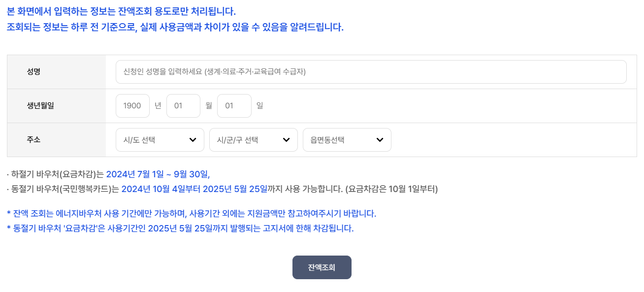 - 현금 인출 불가: 에너지 바우처는 현금으로 돌려받을 수 없습니다.