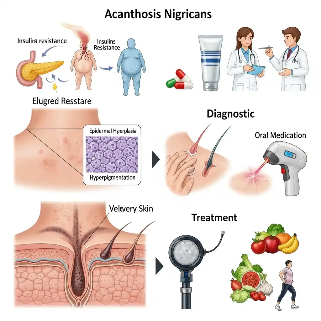 흑색가시세포증(Acanthosis Nigricans)은 피부의 주름진 부위, 특히 목, 겨드랑이, 사타구니 등에 발생하는 색소 침착과 피부 비후를 특징으로 하는 피부 질환입니다. 피부가 어둡고 두꺼워지며, 마치 벨벳과 같은 질감을 가지게 되는 것이 일반적입니다. 단순히 미용상의 문제로 여겨질 수 있지만, 때로는 기저 질환의 징후일 수 있어 주의가 필요합니다.