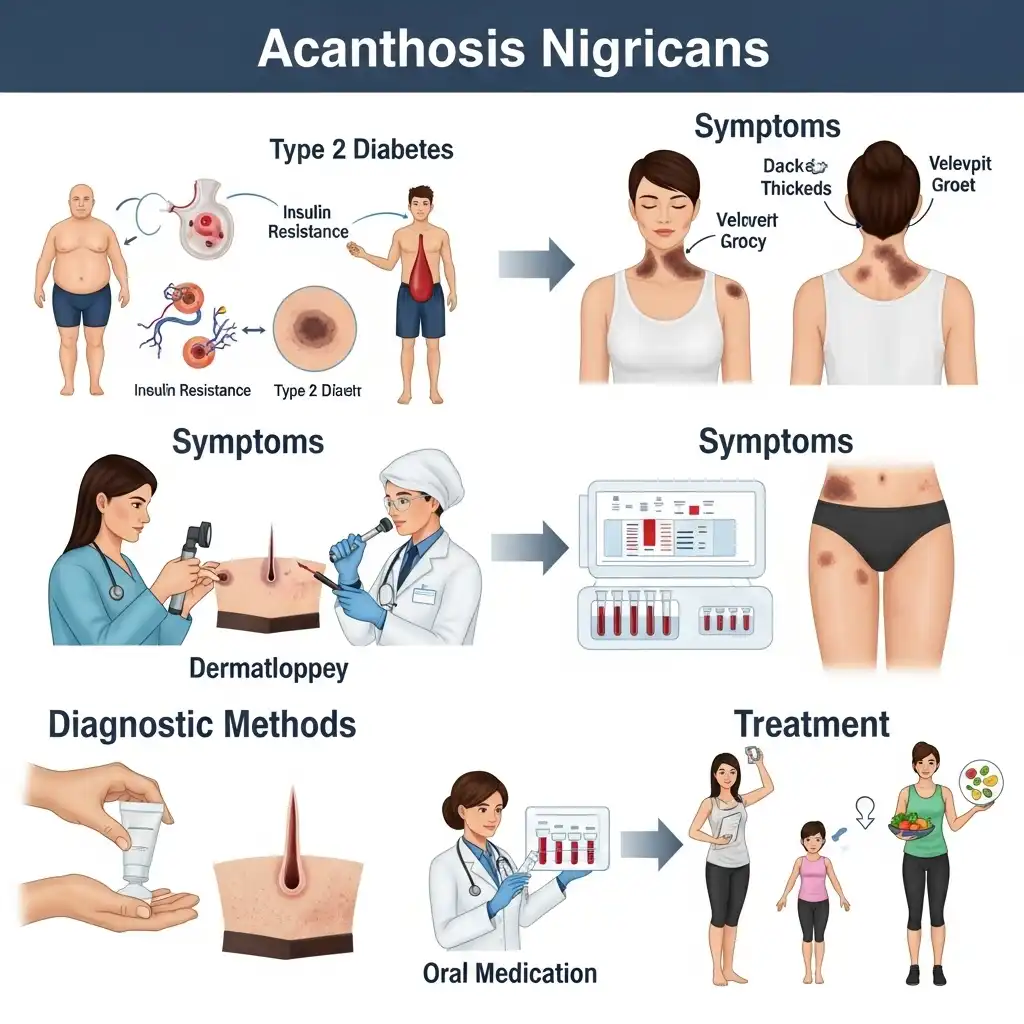 흑색가시세포증은 대개 피부의 임상적인 특징만으로 진단이 가능합니다. 하지만 정확한 원인을 파악하고 기저 질환 유무를 확인하기 위해 추가적인 검사가 필요할 수 있습니다.